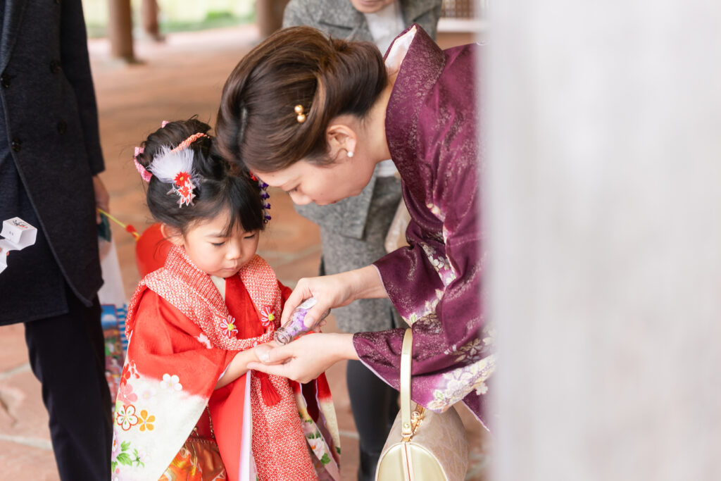 また、こちらの神社様はご祈祷中の撮影が可能です。また、雨の日だった場合を心配される方も多いかと思いますが、軒下も多く雨の日でもお子さんのハレの日を残しやすい神社です。