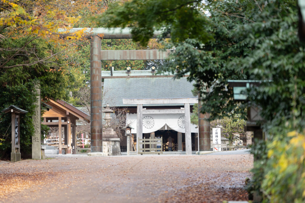 毎月蚤の市なども開催されている富山縣護國神社。境内が広々としており、春には桜が美しく、秋には楓や桜などの紅葉も楽しめる神社です。